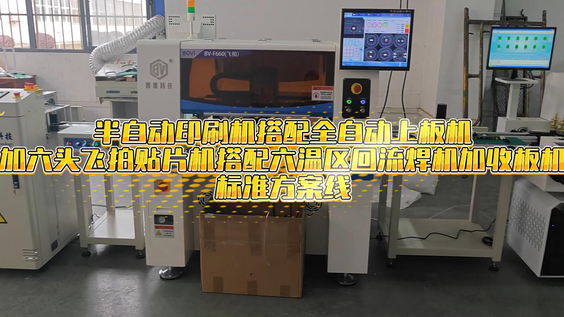 半自动印刷机搭配全自动上板机加六头飞拍贴片