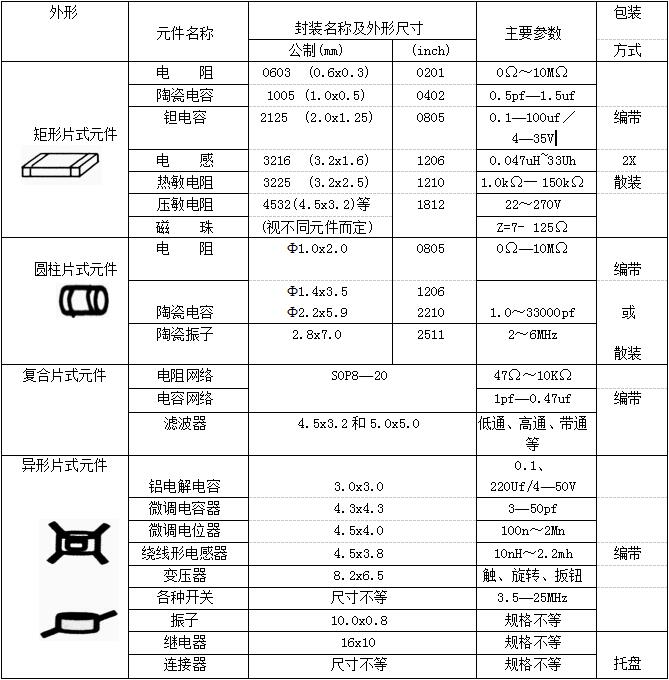 1、表面组装元件(SMC)封装尺寸有公制(mm)和英制Gnch)两种表示方法,欧洲大多采用英制(inch)表示,日本大多采用公制(mm)表示。我国没有统一标准,公制(mm)和英制(inch)都可以使用。