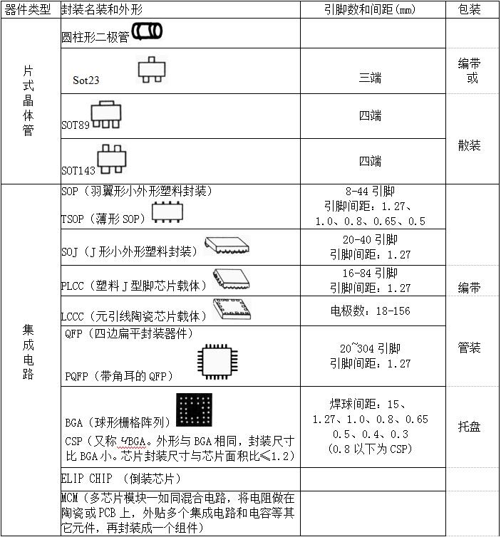 4.3表面组装器件(SMD)的外表封装、引脚参数及包装方式(见表4-2)