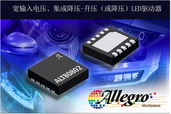 美国新罕布什尔州曼彻斯特市–Allegro MicroSystems, LLC(以下简称Allegro)宣布推出62xx/808xx 系列照明LED驱动器产品 的最新成员 ALT80802。新产品能够满足采用12V电池输入驱动,单个LED串具有3到4个白光LED的重要市场趋势,非常适合于雾灯、倒车灯、日间行车灯(DRL)、后视镜侧灯和其他汽车照明等应用。ALT80802解决方案能够以其他竞争对手几乎不可能的方式满足这些照明要求,具有独特的2MHz工作性能,增强的PWM调光能力和故障保护功能,并且可大幅减少外部元件的数量。此外,这款新器件可在高达2A电流下工作在降压模式,能够以电池驱动1到2个WLED,或者从预升压电源驱动多达12个WLED。